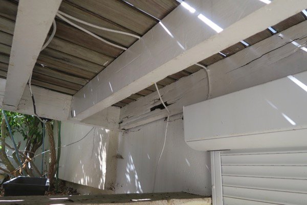 Par ailleurs, les autres poutres ont été peintes en blanc, il est clair que cette mise en peinture ne protège en rien les poutres des attaques de champignons.