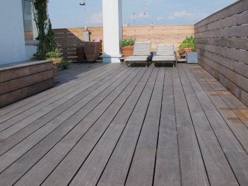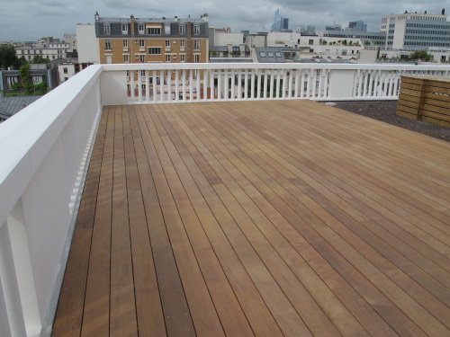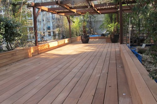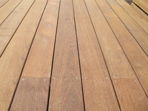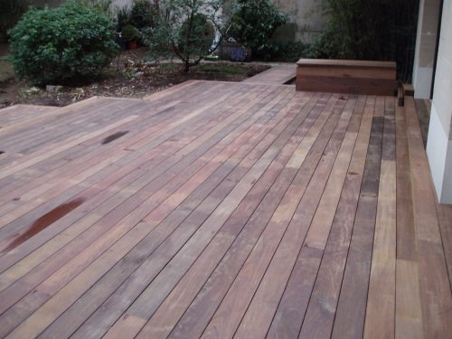 Terrasse en ipé, juste après la mise en œuvre, en été