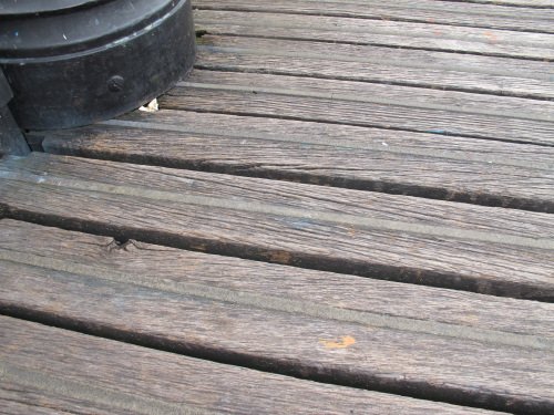 La saleté s’est installée entre les planches et est quasiment impossible à nettoyer. La mousse se développe (voir photos suivantes).