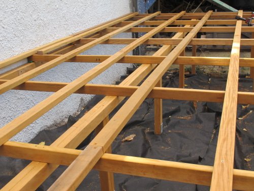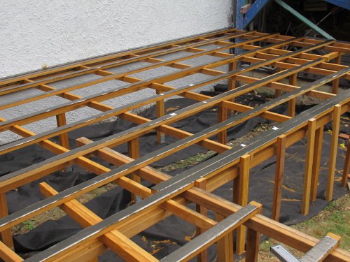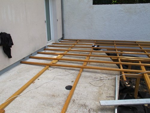 Mise en place du platelage, une fois la structure terminée