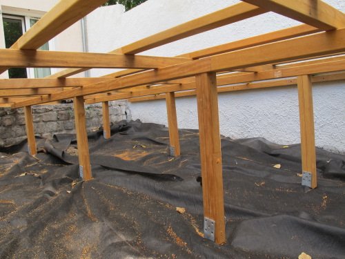 Nous avons créé une double-structure posée sur des plots réglables,