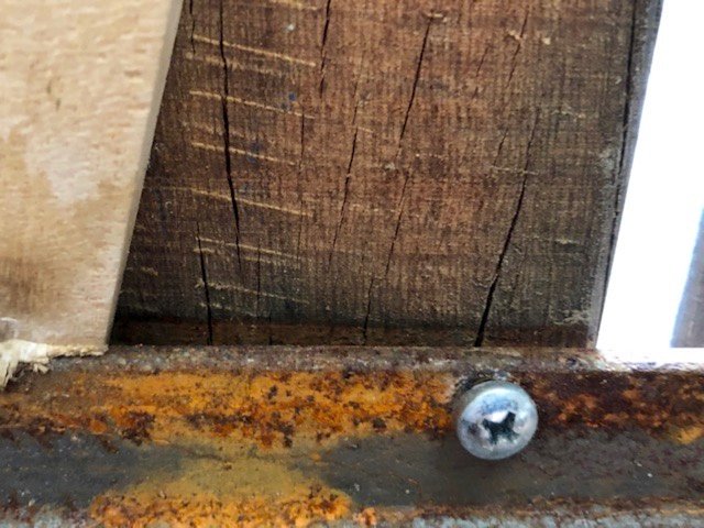 Des essais de vissage par le dessous ont été réalisés sans succès. Visser par le dessous n’assure pas une fixation suffisamment robuste pour résister à la puissance des lames de terrasse en bois exotique. Nous avons dû refaire intégralement la structure porteuse en rajoutant des lambourdes en bois et des solives le long de poutrelles en acier, pour reconstituer un support fiable pour des lames de terrasse neuves.