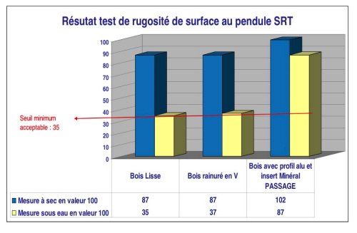 La glissance sur des surfaces en bois est la préoccupation permanente pour les organismes recevant du public.Pour garantir la sécurité des personnes dans les nombreux espaces extérieurs en bois, il existe un test de rugosité au pendule SRT pour les profilés antidérapants.