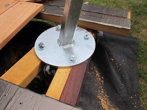 Vue finale du mât qui sort de la terrasse, solidement fixé.
