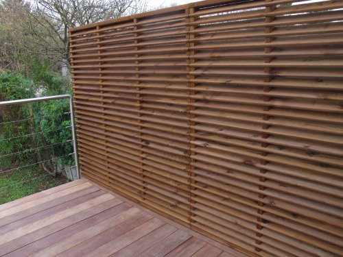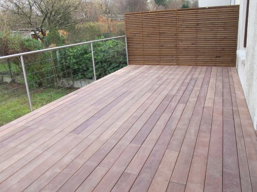 Terrasse sur pilotis au niveau de la porte-fenêtre de l’étage.