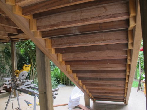 Photo 1 : Petit reportage sur la construction d’un escalier en bois, réalisé avec des lambourdes.