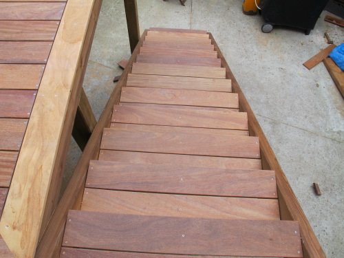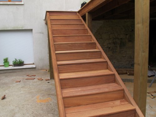 Construction d’un escalier en bois avecdes lambourdes et des lames de terrasse