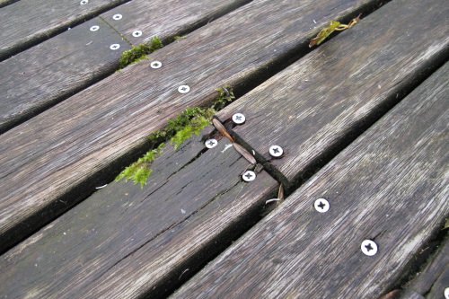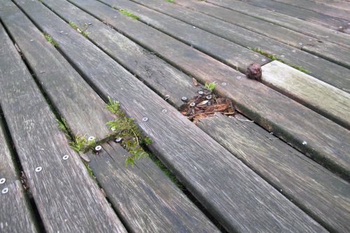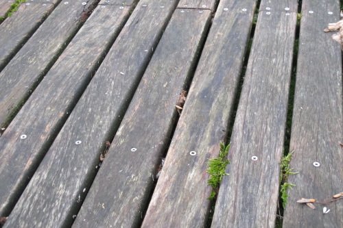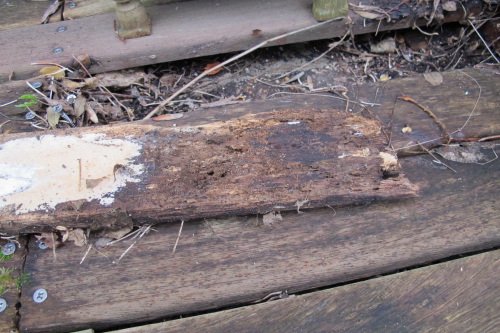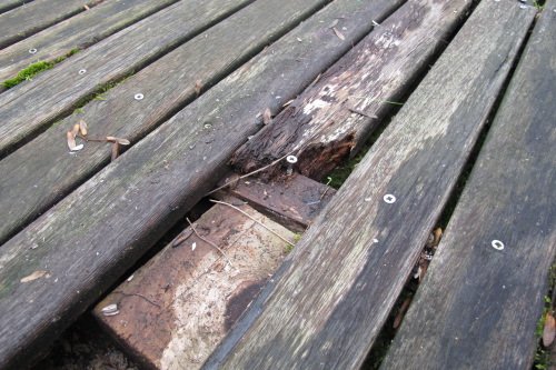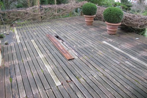 Cette terrasse assez ancienne était complètement pourrie, bien qu’elle ait été posée sur un sol béton.