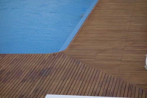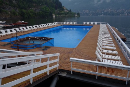 La Villa d’Este su le Lac de Côme est sans doute l’un des plus beaux hôtels du monde. La magnifique piscine sur le lac est agrémentée d’une remarquable terrasse en Teck.
